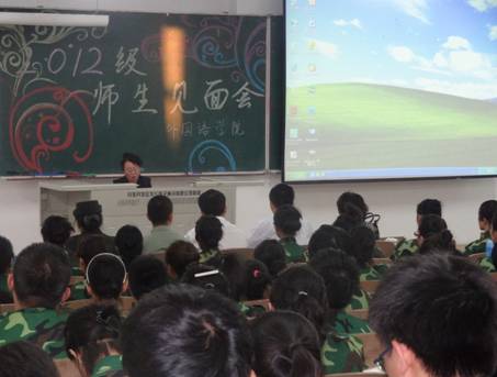 2012年9月5日17时30分,304永利登录入口在丹青楼成功举办了2012级师生见面会及专业介绍会。304永利登录入口院长王丹教授,党委书记辛淑英副教授,副院长郭永刚教授,副院长岳喜华教授,党委副书记、副院长于洋老师,英语教研室主任赵莉教授,日语教研室主任任力教授,俄语教研室主任吴芳教授,团委书记、09级政治辅导员玄凌老师,学生会秘书长、2011级政治辅导员常方圆老师,2010级政治辅导员张刚老师,2012级政治辅导员李靖坤老师出席了本次见面会。2012级全体新生参加了此次见面会。