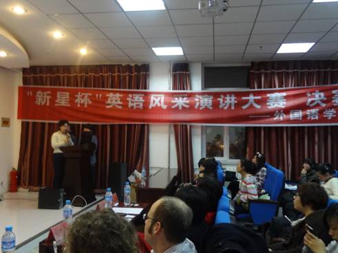 2012年10月26日18点,304永利登录入口在文博楼1009室成功举办新星杯英语风采演讲比赛。担任本次比赛的评委有304永利登录入口田雪凌老师、马佩红老师、齐艳老师,以及外教Ben Watson、Lindsey Seader、Steven Yue 。