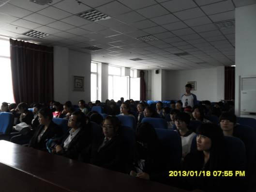 首先,李婧坤老师通过ppt的形式向大家展示了“人生三论”,并以此作为活动的开始。在场同学就自己对“中国梦”的理解简单发表了自己的看法。一部分同学谈到自己从国家层面上来理解“中国梦”的深刻内涵,是中华民族的伟大复兴之路。民族富强,社会和谐稳定,人民幸福是中国梦的基本内涵。各位同学分别利用ppt将自己的职业生涯规划充分地展示给大家,并进行详细解说,结合自身专业将“中国梦”紧密联系到自己的学习生活及未来的职业规划上面。通过ppt及各位同学的充分解说,大家对每位同学都有了深刻的了解。同学们纷纷表示要通过自己的努力,发挥个人的正能量,为实现自己的创新梦,国家的富强梦而奋发图强,同学们的发言无不体现了我们当代大学生强烈的社会责任感与使命感,对“中国梦”的理解和认同会不断促进我们向前进步,永不停歇。郭永长老师对同学们的发言进行了总结,激励同学们为实现自己的梦想,为实现中国梦而不懈努力奋斗。