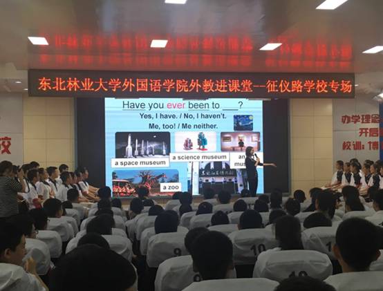 2019年5月31日下午304永利登录入口英语系在征仪路学校举办外教进课堂活动,英语系外教Lydia给征仪路学校初三的学生带来一场别开生面的英语课。本次活动由系主任赵莉教授亲自带队,柴静、蒙博涵、林青红三位老师,以及2016级英语系的38名同学参与了这节外教课。