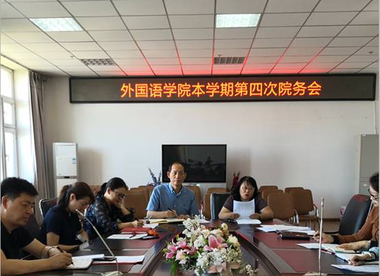接着,董辉副院长就6月教学工作进行了安排。她从9个方面详细介绍和布置了教学方面工作,重点强调了一下三项工作:一是做好一流专业建设申报工作;二是做好2019届英日俄专业学生毕业论文答辩工作;三是组织教师座谈会、学生座谈会。随后,李想副书记、副院长就我院学团工作的重点进行了通报,重点介绍了三项工作:一是做好毕业生“启航教育”系列活动;二是组织开展毕业典礼,毕业晚会活动;三是做好学生诚信考试教育。