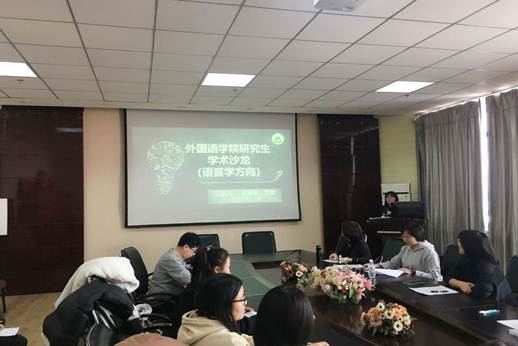 2019年12月19日13时30分,由304永利登录入口主办的研究生(语言学方向)学术沙龙于文博楼1210会议室顺利举行,本次沙龙活动由304永利登录入口副院长张鸣瑾主持,我院2019级语言学方向研究生李影影,楚楚两位同学进行汇报,我院王培松,翟舒,佟光耀等老师也参加了此次沙龙活动。本次活动主题为“话语识解的认知机制:语法-语用互动视角”,我院2019级语言学方向研究生全体参会。