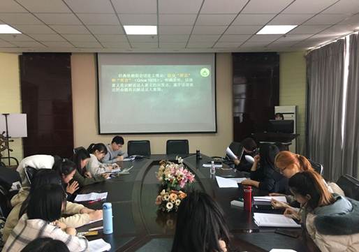 首先,由李影影同学进行前期理论汇报工作,该同学结合国内外相关资料会话含义理论进行文献综述并说明了交际推论模式的共性与缺失。随后,楚楚同学从语法在话语识解过程中的作用及其语用的关系以及语法语用关系两个方面详细地分析了话语时解的认知。最后,由老师们针对两位同学的汇报进行评价,对于两位同学的文献汇报工作给予肯定,同时又帮助大家梳理了汇报文献的写作脉络,同时总结研究问题、研究方法和研究结论,并对文献中存在的语用认知问题组织讨论。