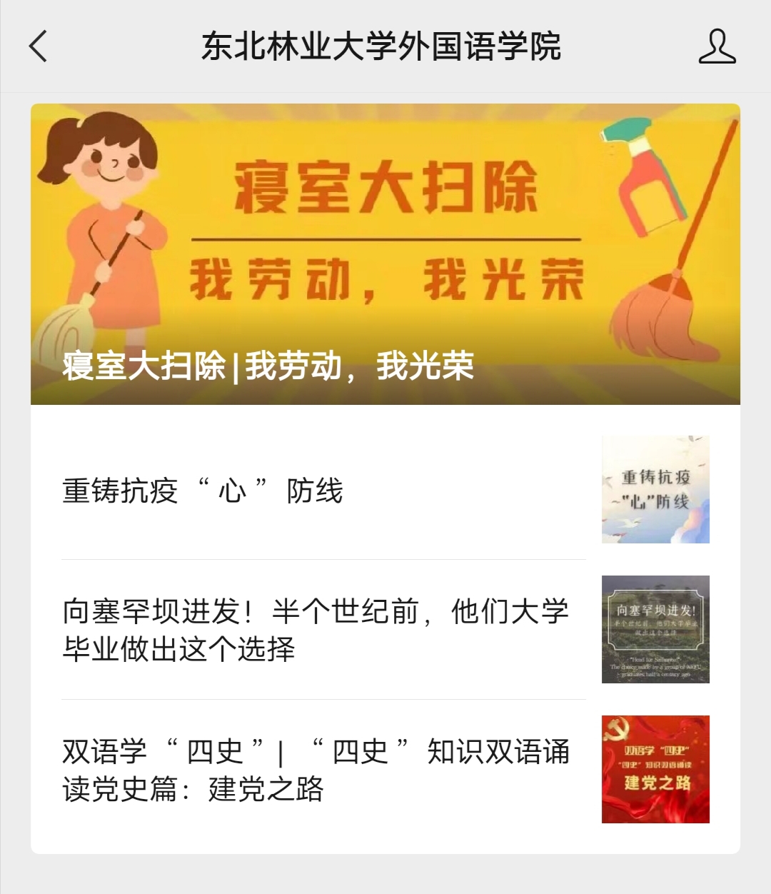 英日俄专业同学结合自己所学语言知识,在专业老师的指导下发扬外语学子专业优势,在学院官微上以双语朗读的方式分享“东林故事”,以另一种声音将东林精神及优秀校友事迹传向世界。塞罕坝精神、鹤魂精神、人拉梨精神、鹦哥岭精神……一个又一个精神,一代又一代东林人砥砺奋进,打造绿水青山,为生态文明事业贡献青春和力量。朗读者张士博表示这次活动增强了专业实践的能力,为了精准的翻译,标准的发音,我们与老师一遍一遍的修正练习,经常为了一个词讨论的面红耳赤,这是我们展现给全世界的声音,容不得半点马虎。