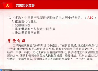 从声势浩大的五四运动,到嘉兴南湖红船上掷地有声的誓言,再到充满人类智慧的毛泽东思想;从隆重盛大的第一届全国人民代表大会第一次会议到具有划时代意义的改革开放,再到习近平新时代中国特色社会主义思想。成员们无不沉浸在充满红色气息的氛围中,在问答中学习知识,在知识中感知红色基因。