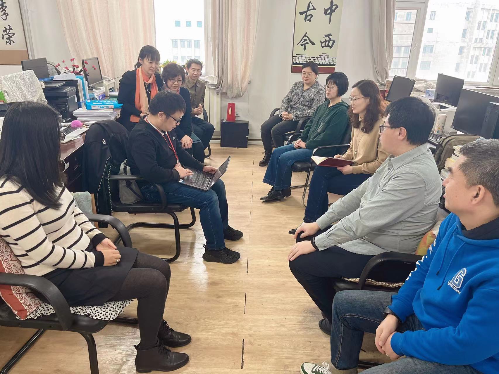 首先,由蒙博涵老师带领全体教师学习二十大报告提出的重要论述,包括三个“务必”、十年来三件大事、中国共产党的中心任务、中国式现代化的本质要求、五个重大原则、五个“必由之路”等,之后教师们进行了讨论,并完成了随机出的小测试;其次,各位老师分享了自己所授课程的教学模式和考核方式,其他教师积极参与,阐述自己的想法,给出合理性建议;最后,英语系主任柴静老师就期中教学检查和2023届毕业生毕业论文事宜进行了说明和部署。