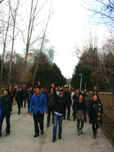 13时30分,100多名中外教职工齐聚在文博楼门前,随着一声号令,在猎猎飘扬的彩旗引导下,开始了此次校园林场徒步行走。在整个行进过程中,每个参与者都带着轻松愉悦的心情,边走边欣赏缤纷的春色,吐纳着清新的负氧离子,体味着行走的快乐。