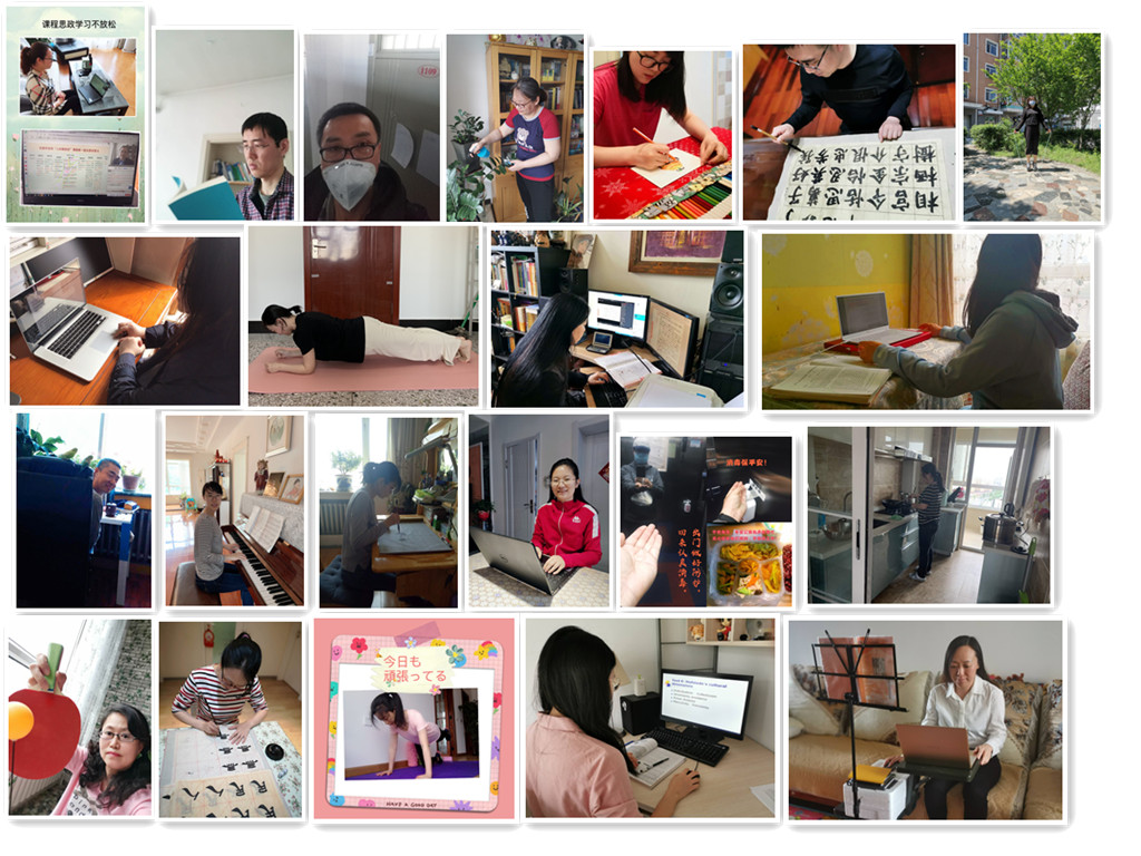 教师们在通过多样的居家活动丰富生活的同时,仍牢记教书育人的职责,辛勤备课、准时授课,通过线上教学平台与学生们共同构建网络课堂,充分利用网络教学资源为学生们传授知识、答疑解惑,并时刻关注学生们的学习情况,及时与学生沟通解决问题,“教学+互联网”的授课模式让教师们能够在疫情期间正常进行教学活动。