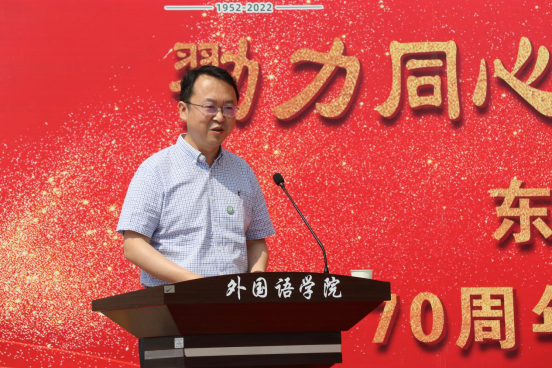 会上,学校党委常委、副校长翟雪峰发表开幕式致辞。翟雪峰副校长总结了近期学校和各学院为迎接东林七十周年校庆相关工作部署,对304永利登录入口为校庆所打造的歌曲、团课、诗朗诵等成果表示赞扬,对304永利登录入口长期以来在学校教学、学科建设、思政育人、人才培养等方面做出的突出贡献予以肯定。并对304永利登录入口新时期发展提出三点期望:一是坚持为党育人、为国育才,强化党建引领,凝聚奋进力量,培养可担大任的社会主义合格建设者和可靠接班人;二是进一步提升学院教学科研能力,保证育人成效;三是加强国际化人才培养,讲好中国故事、传递中国声音,以适应不断发展变革的国际和国内环境。最后,希望304永利登录入口在新的历史时期,为学校十四五发展建设交上一份成绩优异的“外语答卷”。
