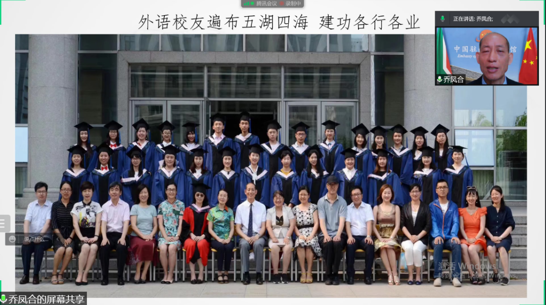 会上,乔教授从“砥砺奋进,绿水青山,七十载创征程伟业”、“语通中外,慎思笃行,外语人架桥梁”、“立德树人,新时代接续奋斗共赴复兴”三个方面以全方位、国际化视角为外语学子指明了外语专业学习前景与新时代使命。